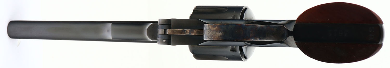 BOXED, Navy Arms (Uberti) 1875 Schofield No. 45 Auto Ejector, CAL: 45 COLT, MFG: Modern, SN: 3611, Single Action Revolver, 7'' barrel. Standard address, caliber & patent dates. The blued finish rates 98% overall, with a few small areas of speckling. The case-hardened trigger guard, hammer & top break lever all have vivid case-colors. Bore is excellent. Integral notch rear sight & round blade front sight. Comes in factory box, with instructions on the lid & a safety pamphlet. Box condition is very good. There is some corner/edge wear & the top label is beginning to peel in the corners, FFL Req. - Value: 700 to 1100