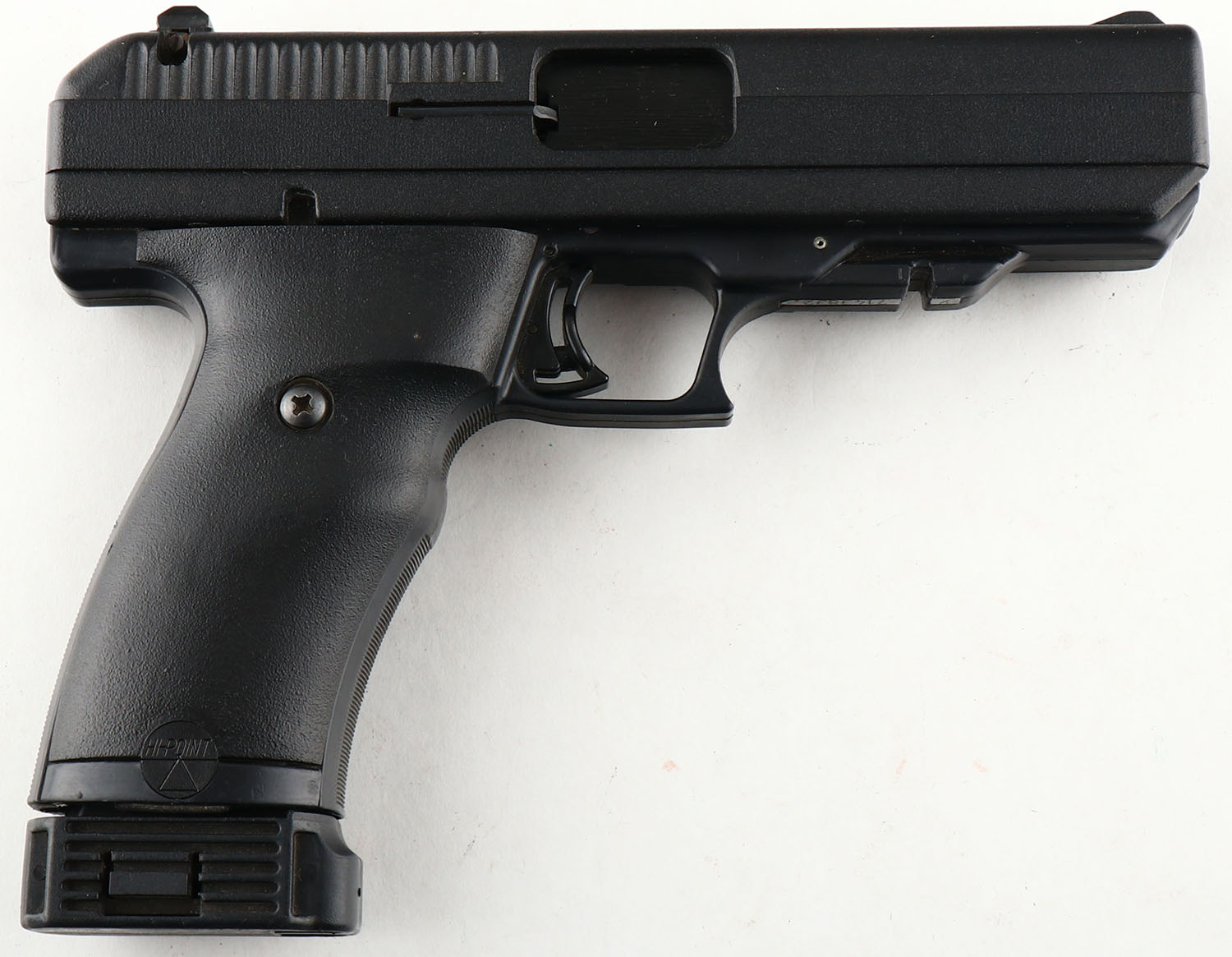 Hi-Point, JCP, CAL: 40 S&W, MFG: Modern, SN: X7143832, Semi Auto Pistol, 4 1/2'' barrel. The synthetic grips are excellent. The matte finish on the slide is excellent. Bore is good, bright, but appears rough. Orange two-dot rear sight & yellow front sight. Comes with Crosman holster. FFL Req. - Value: 100 to 200