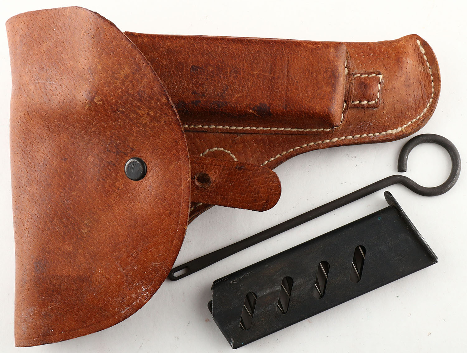 CZ, VZ 52, CAL: 7.62x25 TOKAREV, MFG: 1953, SN: S10651, Semi Auto Pistol, 4 1/2'' barrel. Standard markings on the frame. The Bakelite grooved grips are very good & solid. There is light wear overall. The original matte gray/parkerized finish is very good, with edges worn to metal gray & minor dings/scrapes. Bore is excellent. Fixed u-notch rear sight & blade front sight. Comes with period correct holster, carrying an extra mag & cleaning rod. FFL or C&R Req. - Value: 300 to 600