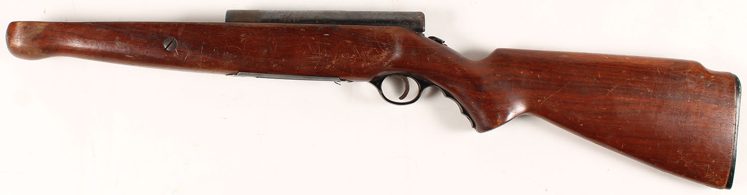 PARTS GUN, Mossberg, Model: Bolt action shotgun receiver, 12ga, MFG: 1950's-60's, SN: None, Bolt Action Shotgun, No Barrel, The original buttstock is very good, with numerous minor to small scratches, scrapes, scratches & contusions to the original finish. The original metal blue finish on the receiver rates 30%. Original buttplate & finger grooved trigger guard are present. Bolt is missing. The trigger & safety are present & seem to function correctly. However, there may also be other small internal parts missing. We do not know all parts which are missing. Therefore, these parts are being sold ''AS-IS, with NO RETURNS & a recommendation for gunsmith repair. FFL or C&R Req. - Value: 30 to 70