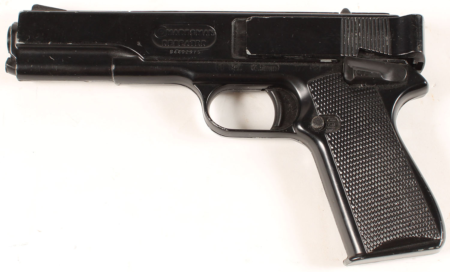 Crosman, Marksman Repeater, Cal: .177 BB, S/N: 94402975, spring actuated BB gun, checkered grips, cast frame, steel barrel insert. Grade: Very Good + - Value: 20 to 40