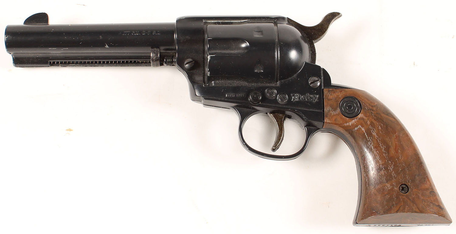 Daisy, single action army, Cal: .177 BB, S/N: K011985X, spring actuated BB gun, smooth plastic Faux-wood grips,cast metal frame. Grade: Very Good ++ - Value: 30 to 90