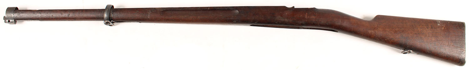 Swedish M96 Mauser Stock, Bore Rating Disk, Hold-over range chart, sling sloops, barrel bands, smooth metal buttplate, proofs on top of buttplate. Grade: Very Good - Value: 30 to 100