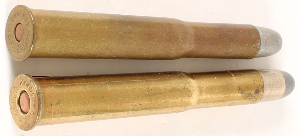 Lot of 2. 450-400 x 3.25''. (1) HS:''ELEY LONDON 450/400'', RN Lead HP. (1) HS:''KYNOCH C .450/400'', RN CN SP. Grade Excellent - Value: 20 to 40