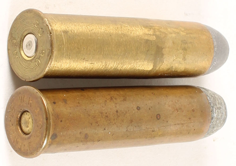 Lot of 2, 50-95 Win Cart., (1) W.R.A.Co. 50-95 WCF, Express bullet, (1) WW 50-90, dented primer, FNL. Grade: Excelelnt - Value: 20 to 40