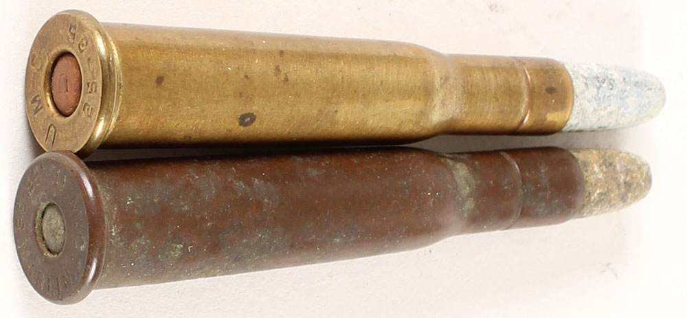 Lot of 2 cart., (1) .25-36 Short Range lead bullet, (1) .25-36 Marlin. Grade: Very Good - Value: 10 to 20