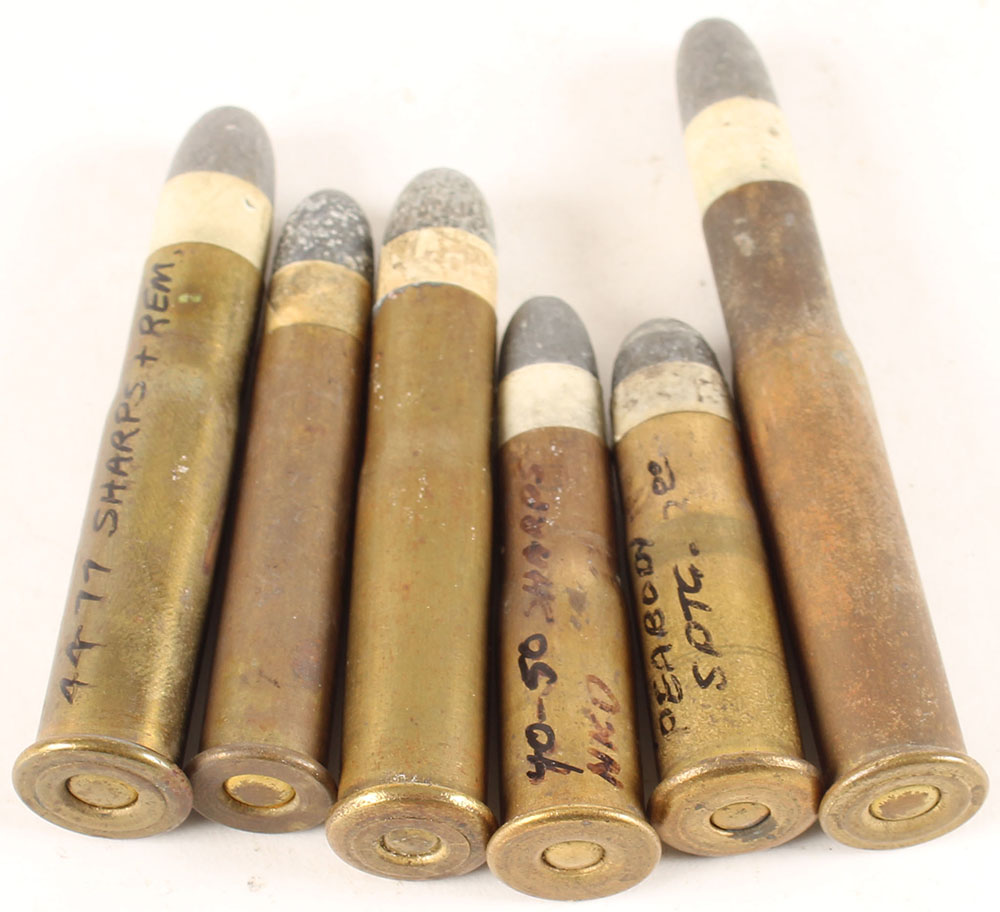 Lot of 6 carts, 40-90 2 5/8: Sharps, 45-50 Peabody, 40-50 Sharpes straight 40-50 Sharpes nedked, 44-77 2 1/4''. Grade: Very Good - Value: 30 to 60
