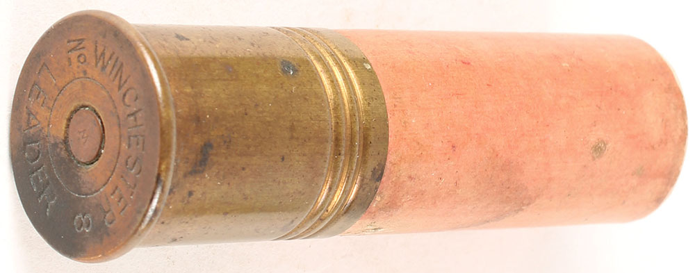 H/S= ''WINCHESTER No 8 LEADER'', 8 ga., . 3 1/4'' OAL, NPE red paper case. Grade: Very Good + - Value: 16 to 60