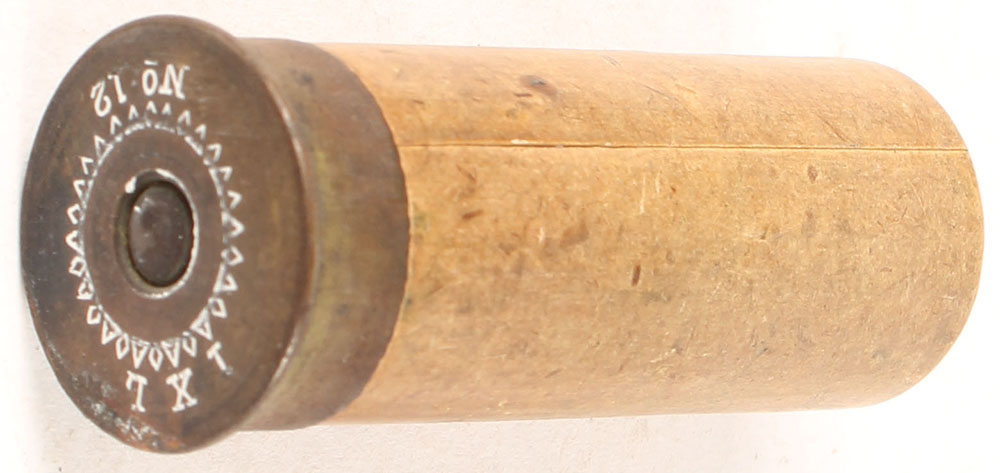 I X L no. 12 loaded shell, tan top wad hard to read. Grade: Very Good - Value: 6 to 30