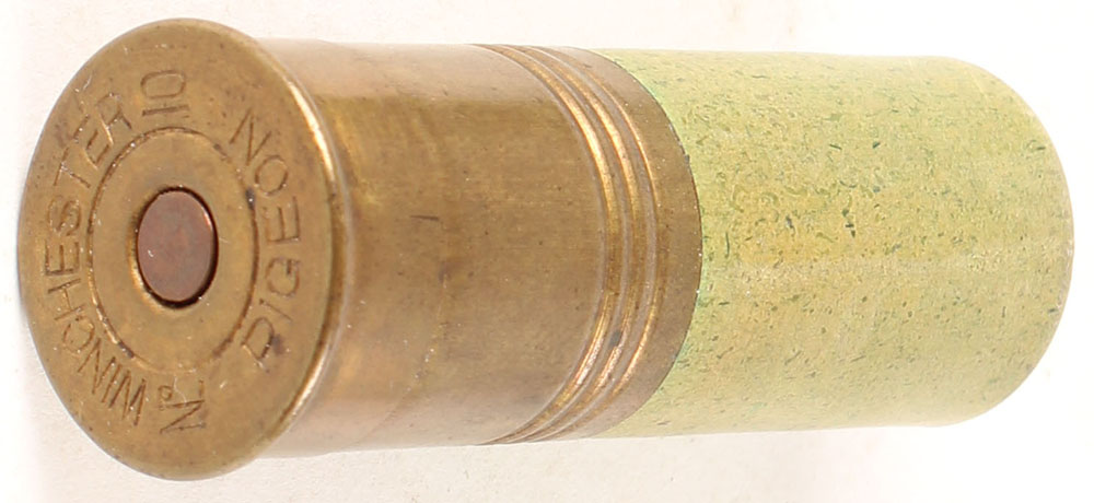 Winchester 10ga PIGEON, loaded green paper shell, TW 3 1 1/8 4 New E.C. Grade: Excellent - Value: 6 to 30
