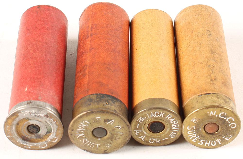 | Lot of 4, mixed mfg. paper shot shells. Grade: Very Good + - ...