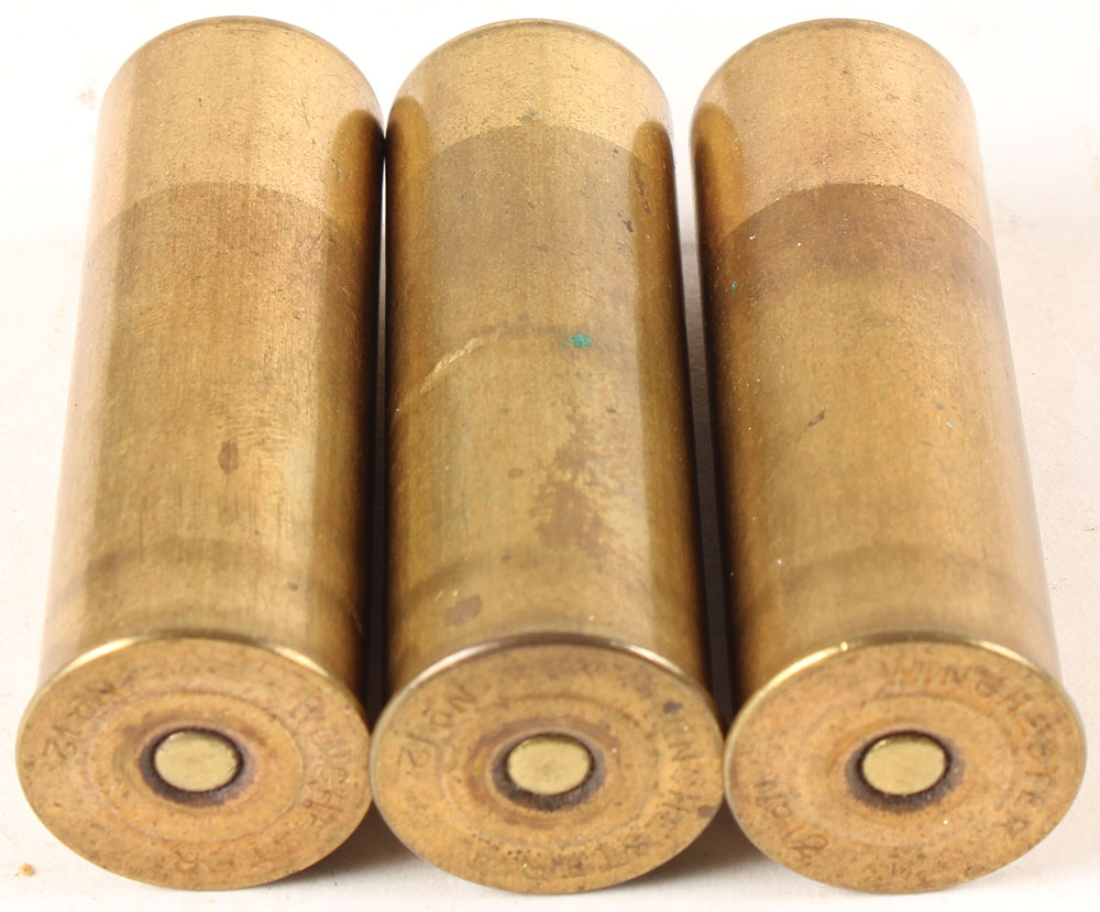 | Lot of 3, Winchester No.12, Factory loaded brass shotshells, tan...
