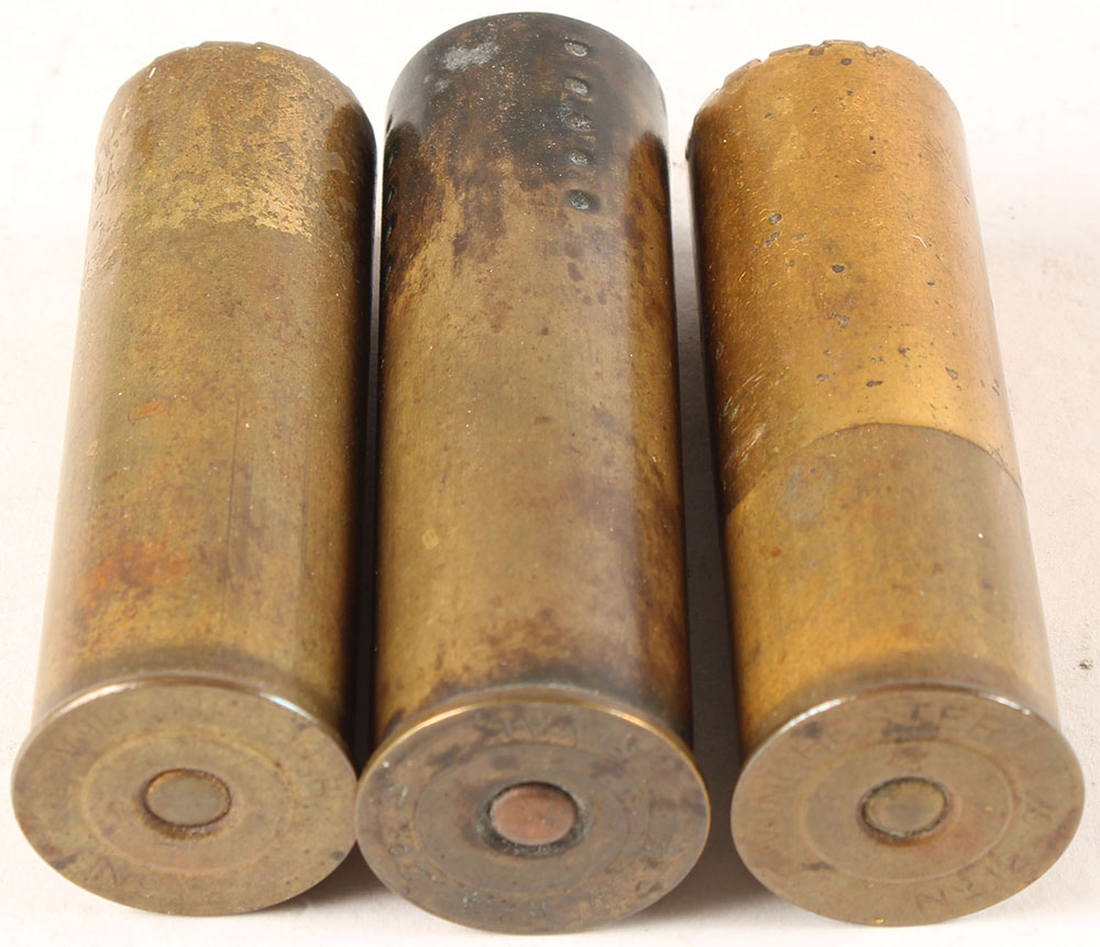 Lot of 3, Winchester No.12, Factory loaded brass shotshells, tan & red TW. Grade: Very Good - Value: 10 to 30