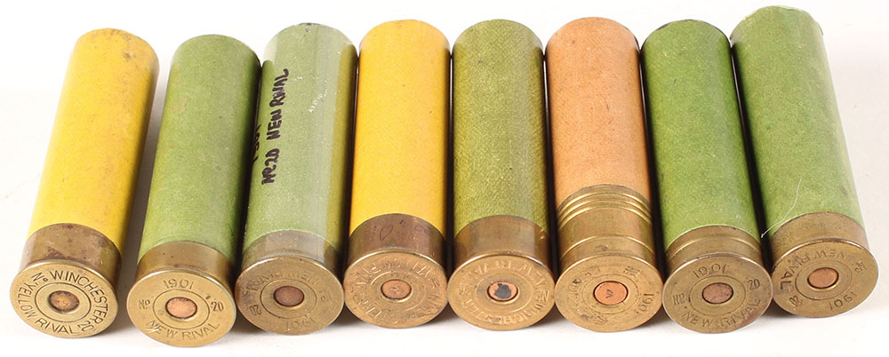 | Lot of 8, Winchester, 20ga., NPE, empty paper cases. Grade: Exce...