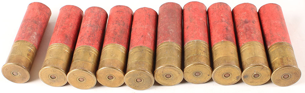 | Lot of 10, 8ga., NPE, H/S: ''No. 8'', red paper cases. Grade...