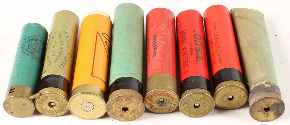 Lot of 8, Foreign, empty paper shot shells, see photo for details. Grade: Very Good - Value: 10 to 50