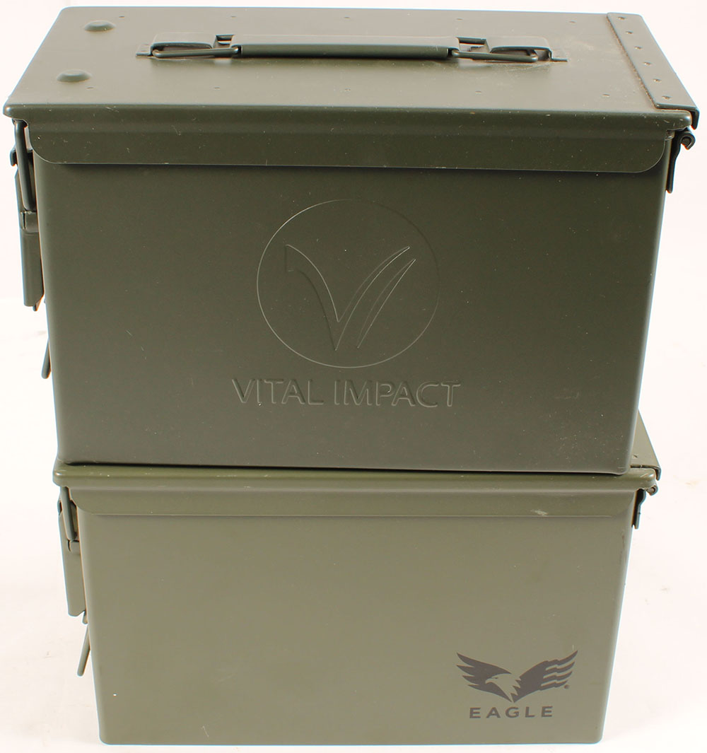 | Lot of two M2A1 .50 Cal metal ammo cans, both empty, insides of ...