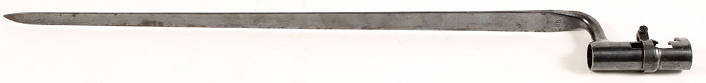 US, M1873 Trapdoor socket bayonet, blued steel, Marked ''US'' on blade, has rust, patina, & roughness in spots. Grade: Very Good + - Value: 50 to 100