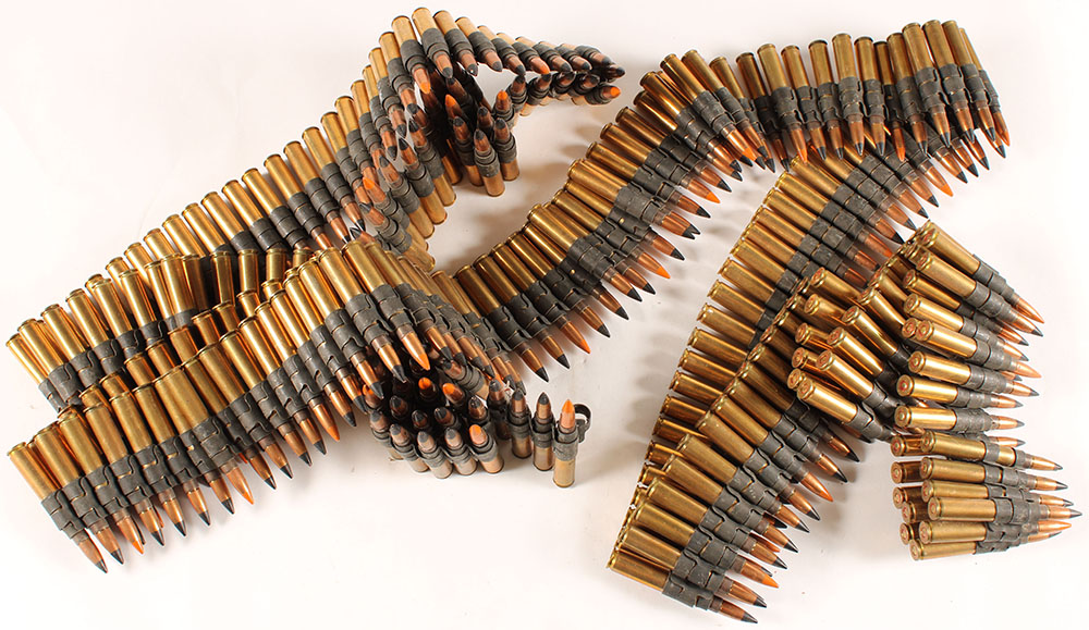 250 Rd. belt of Surplus .30-06, linked with 4 Rds. Of Back tip AP to 1 Rds. Of orange tip tracers. Ammo is very good. Grade: Excellent - Value: 200 to 400