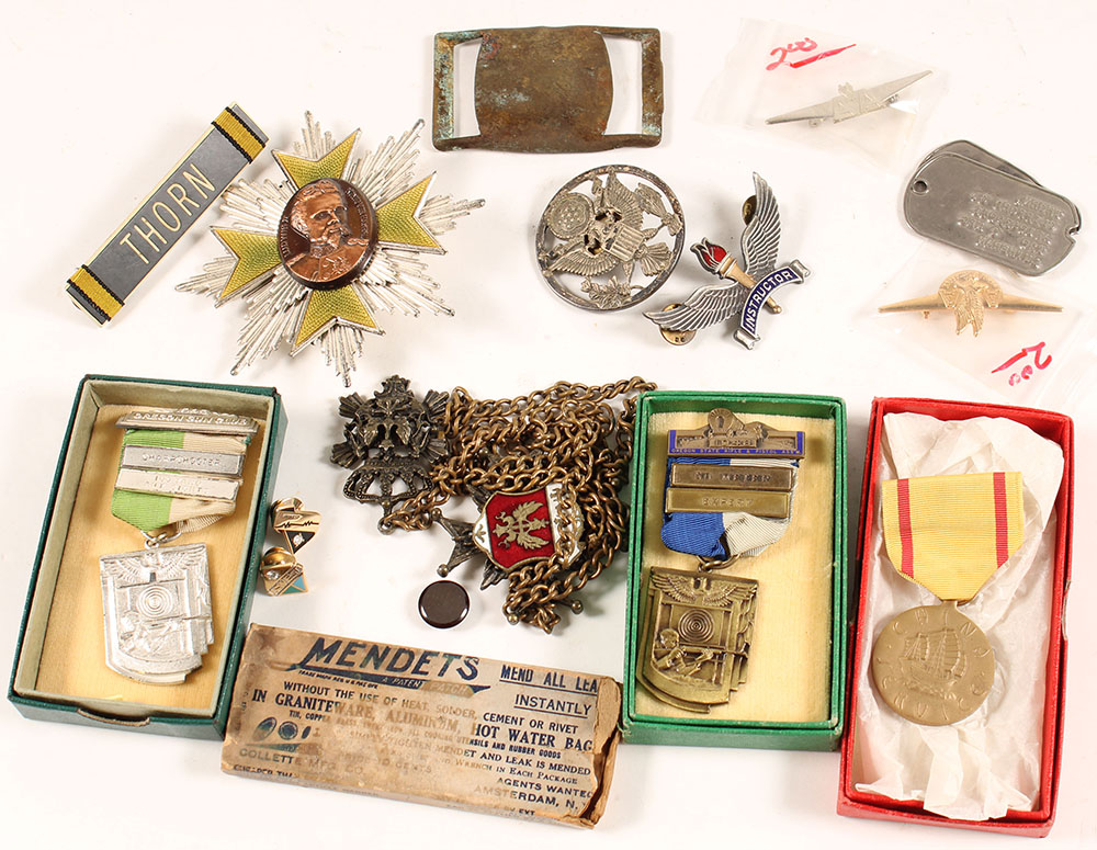 | Large lot of medals, ribions & pinbacks. Grade: Very Good - V...