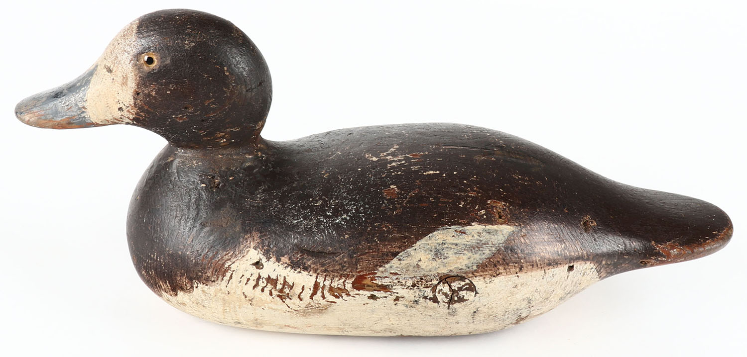 Standard Bluebill Hen by Mason Decoy Company, Detroit, MI, 1896-1924. Glass eyes, solid wood, original paint, structurally excellent, has replaced neck filler. Grade: Very Good - Value: 40 to 100