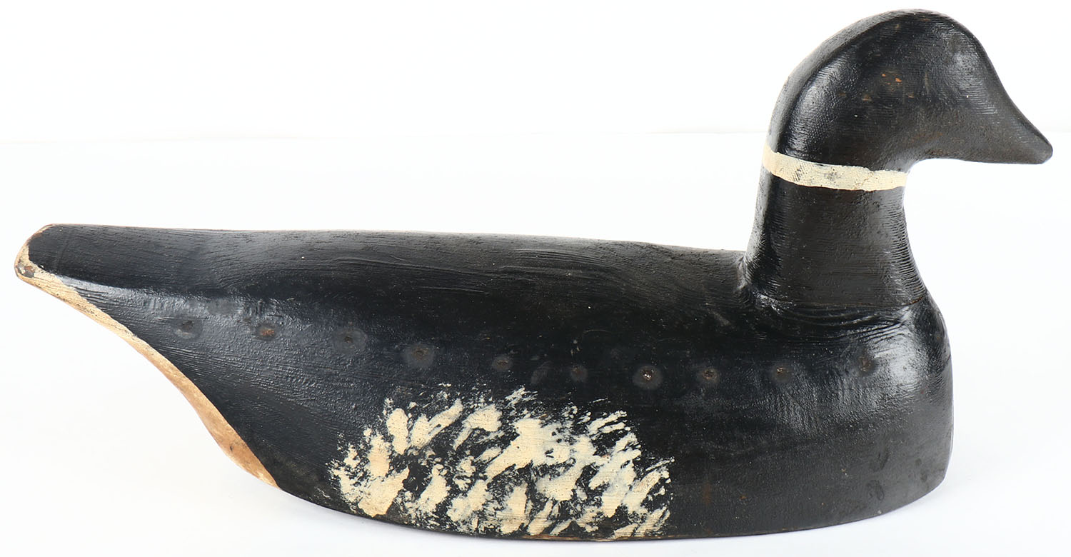 Pacific Brant made by Slim Cameron, Ladner, BC Canada, no eyes, 2-piece hollow red cedar, structurally excellent, excellent original paint, ex-collection of Ira Yeager, Bellingham WA. Grade: Excellent - Value: 100 to 800
