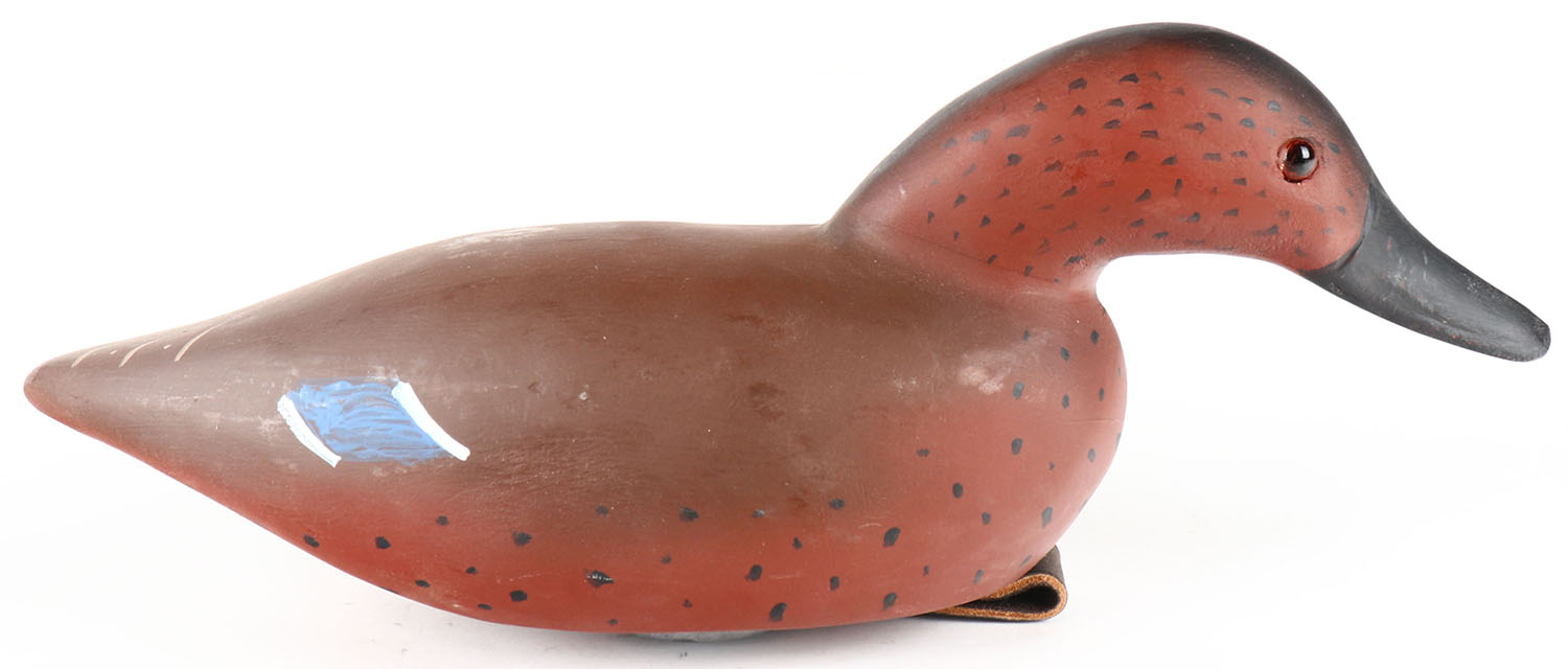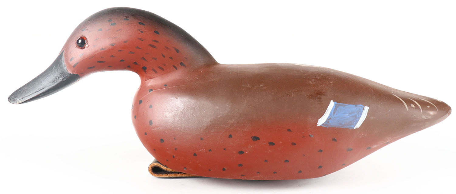 Swimming Cinnamon Teal by J. Stacy, GE, solid wood, original paint, structurally excellent, signed on bottom, 13'' OAL. Grade: Excellent + - Value: 20 to 70
