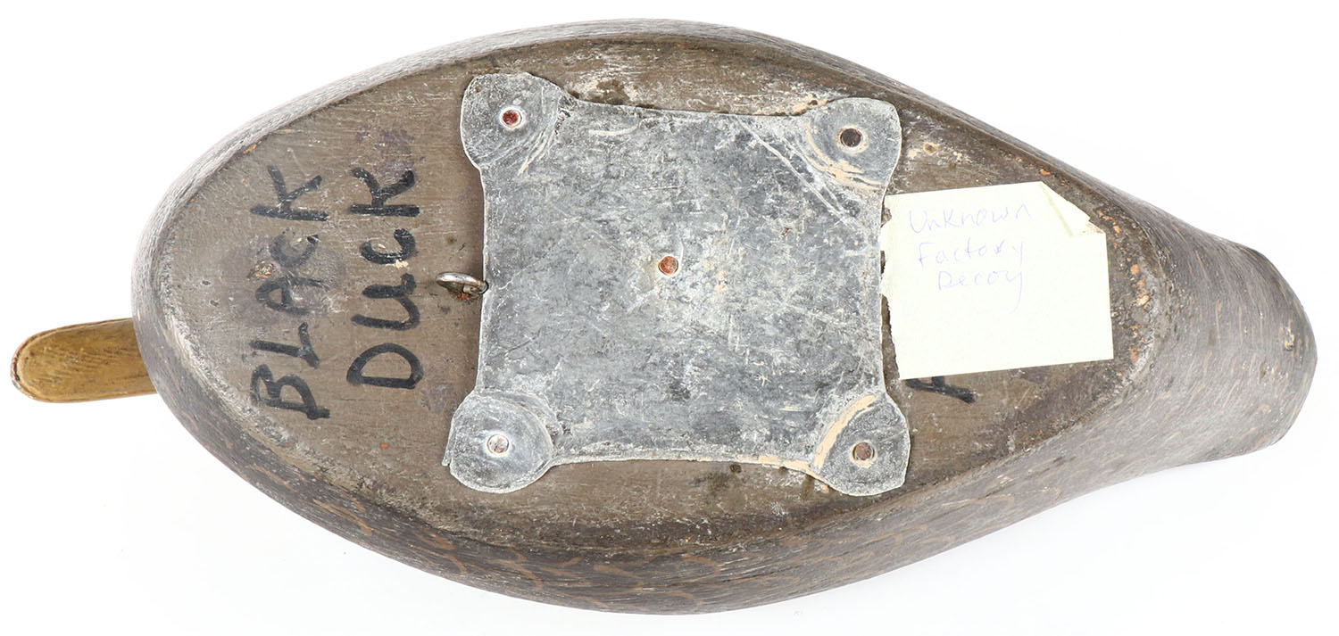 Black Duck by unknown factory maker, CE, solid wood, original paint, structurally excellent, 16 1/2'' OAL. Grade: Excellent - Value: 40 to 80