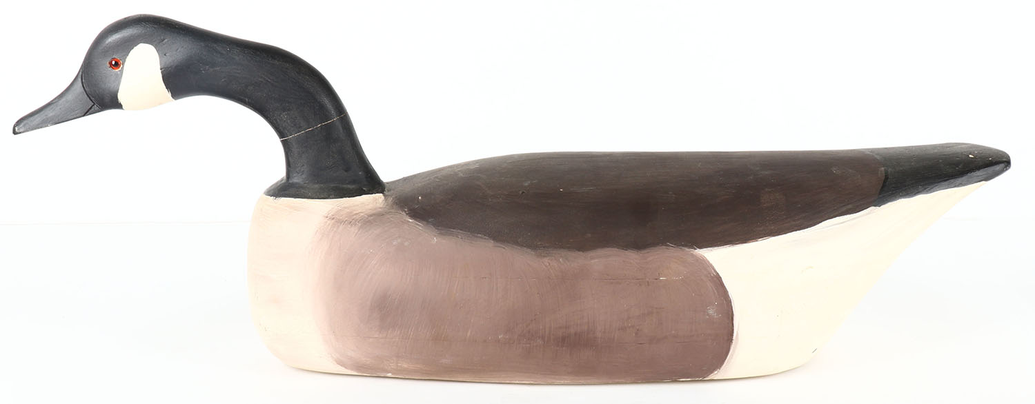 Canada Goose by CW maker, glass eyes, hollow wood, original paint, structurally excellent, branded CW on bottom, 29'' OAL. Grade: Excellent ++ - Value: 20 to 200