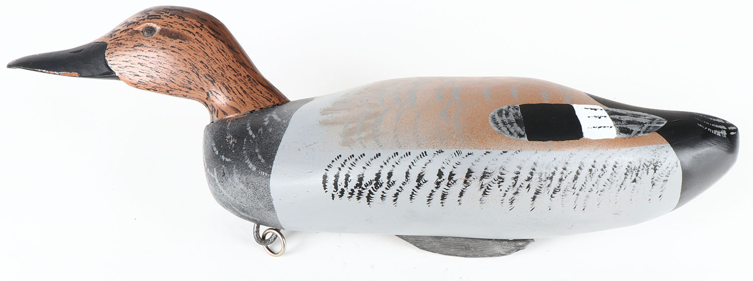 Swimming Gadwall drake by unknown MD maker, carved eyes, solid wood, original paint, structurally excellent. Grade: Excellent + - Value: 30 to 90