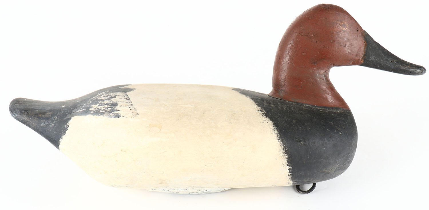 Canvasback Drake by unknown maker, PE, solid wood, repaint, structurally excellent, 15'' OAL. Grade: Very Good ++ - Value: 30 to 60