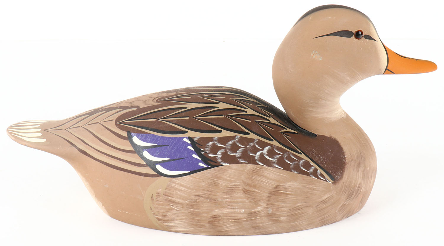 Mallard Hen by Lenard C. Hornick, Stoney Point Decoys, Oak Hal, VA, glass eyes, solid wood, original paint, structurally excellent, stamped & signed on bottom. Grade: Excellent + - Value: 20 to 50