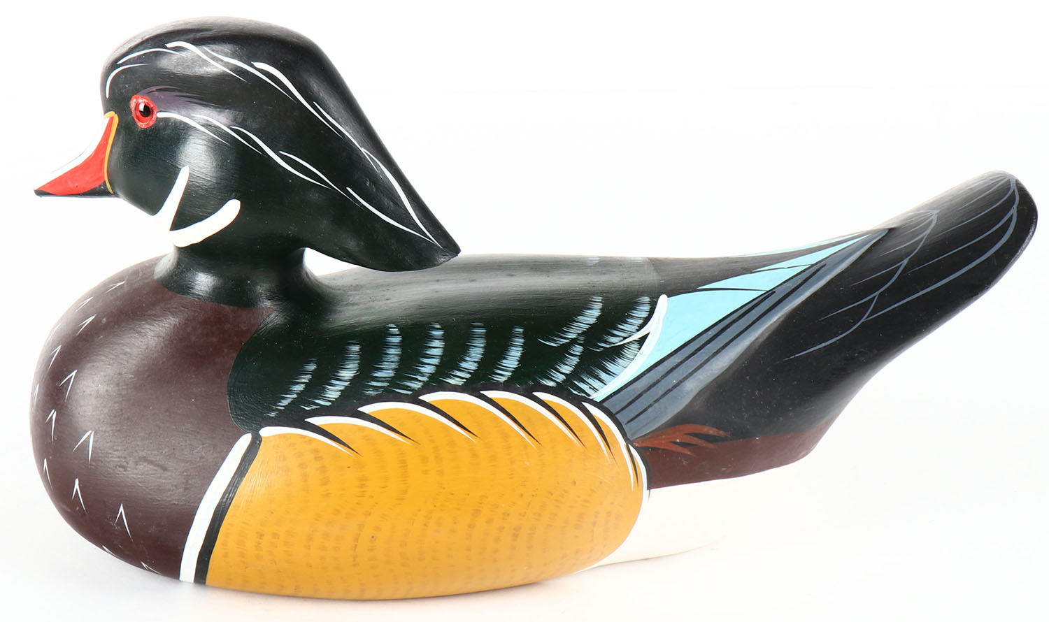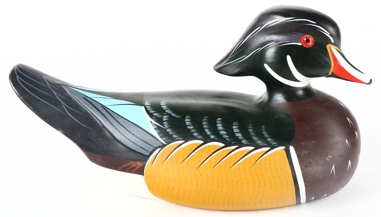 Woodduck Drake by Ed Green, Baltimore, MD, GE, solid wood, original paint, structurally excellent, 13'' OAL. Grade: MINT - Value: 30 to 60