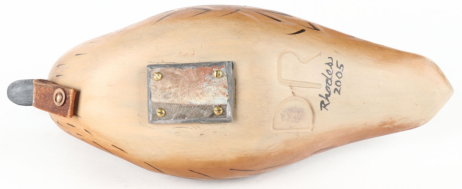 Greenwing Teal Hen by Rhodes, PE, solid wood, original paint, 13'' OAL, paired Drake is in lot 6171. Grade: Excellent ++ - Value: 30 to 60