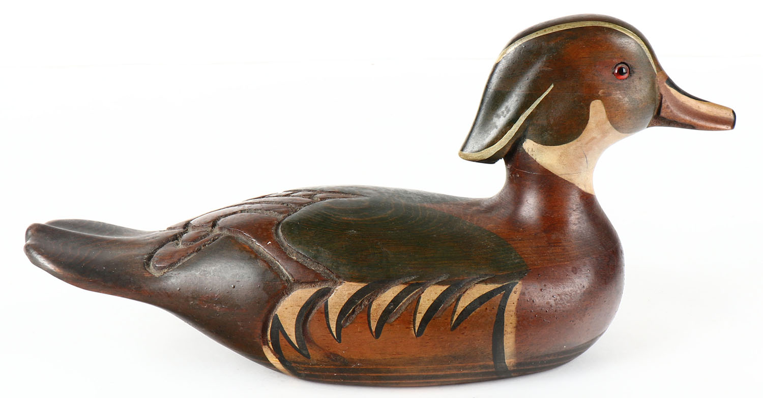 Woodduck Drake by Tom Taber, GE, solid wood, original paint, 14'' OAL. Grade: Excellent ++ - Value: 20 to 60