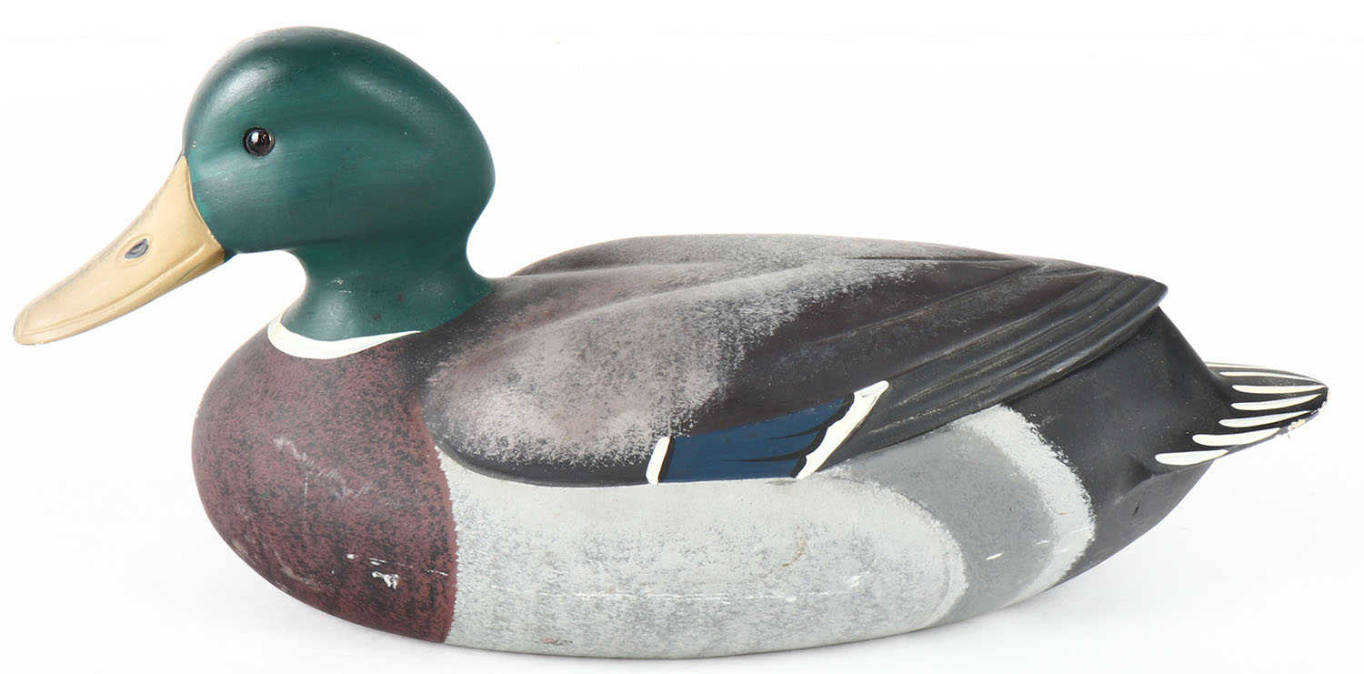 Mallard Drake by BOB BERRY North American Duck Collection, Chesapeake Bay, Bob Berry, glass eyes, solid wood, original paint, signed and branded on bottom by NORTH AMERICAN DUCK COLLECTION BOB BERRY. Grade: Excellent ++ - Value: 20 to 40