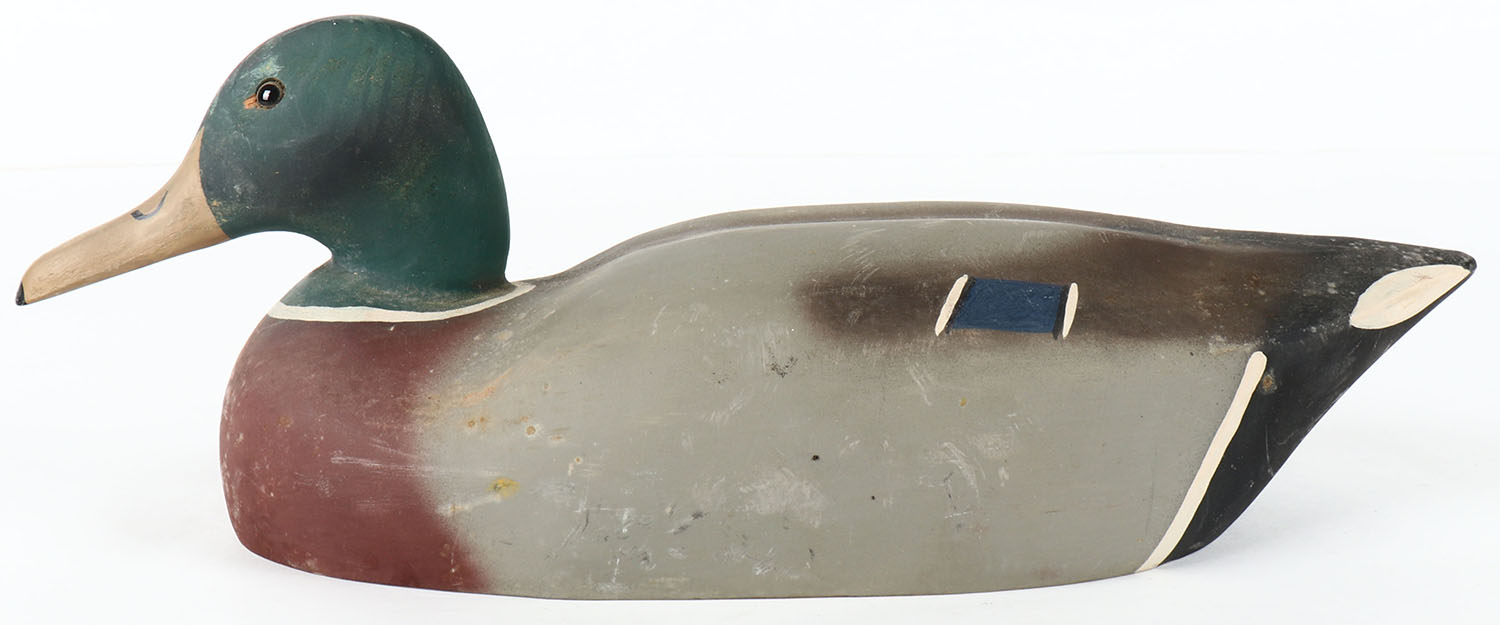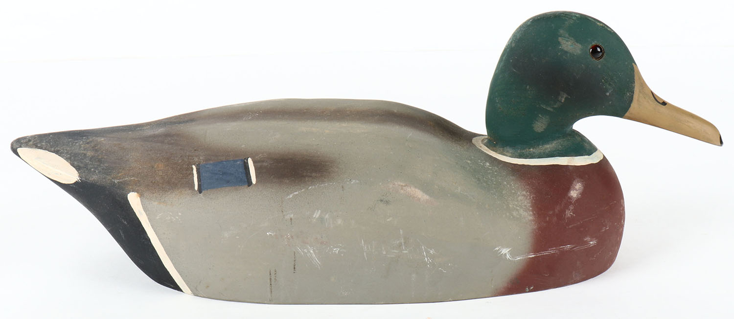 Mallard Drake by Herters Decoy Co., Waseca, MN, 1893 series, glass eyes, solid wood, original paint, structurally excellent, unmarked on bottom. Grade: Excellent ++ - Value: 50 to 150
