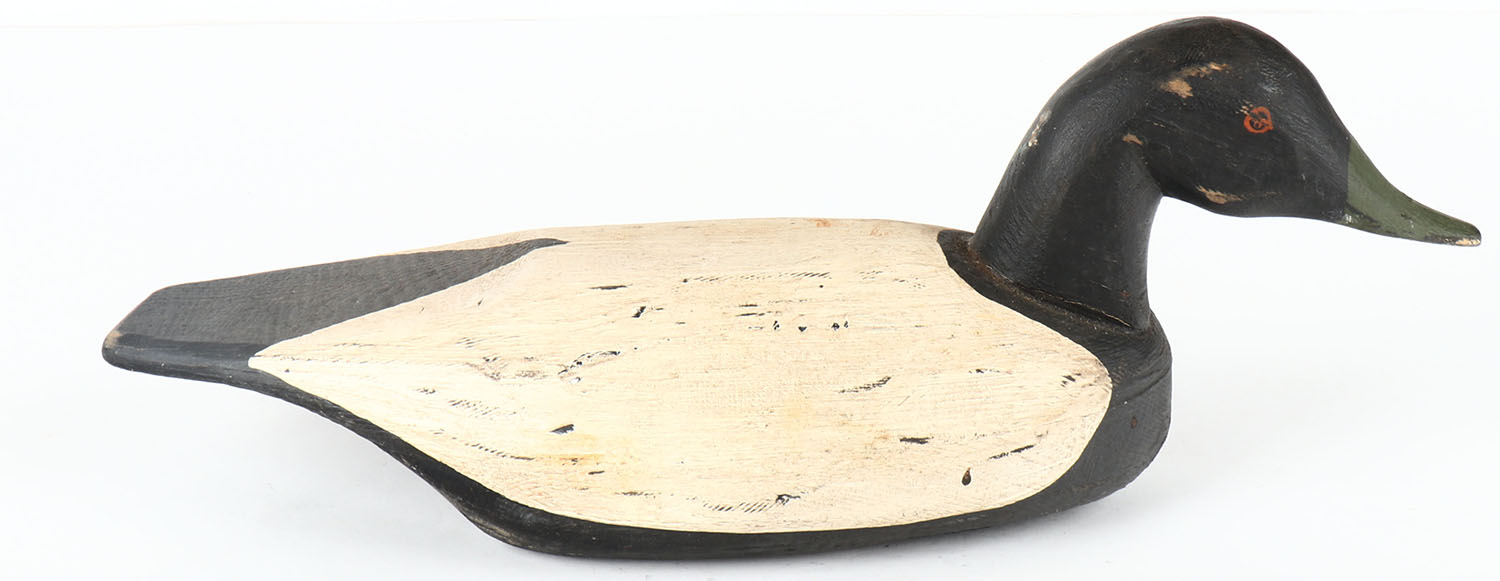 Bluebill Drake by Jack J. Easton MD, PE, solid wood, original paint, signed on bottom, 15'' OAL. Grade: Excellent - Value: 30 to 60
