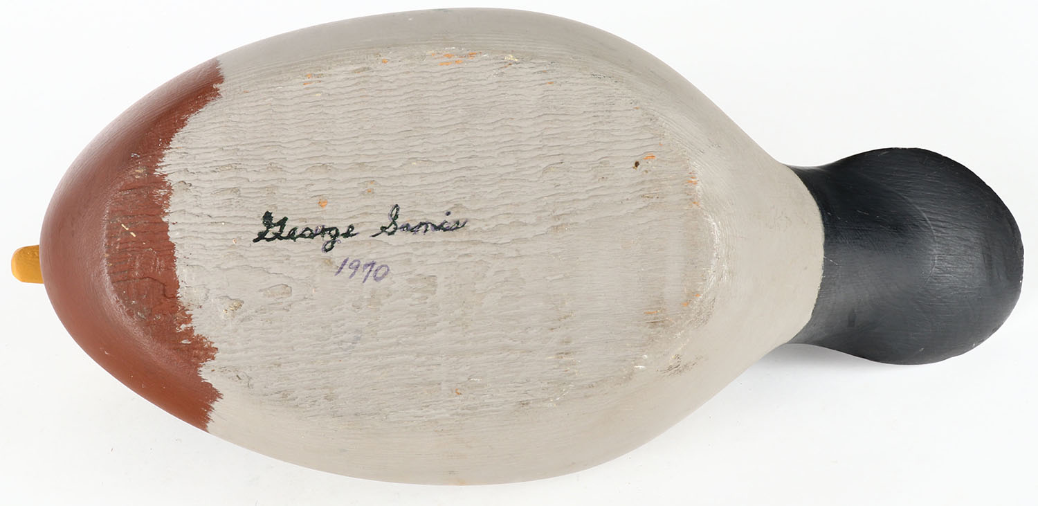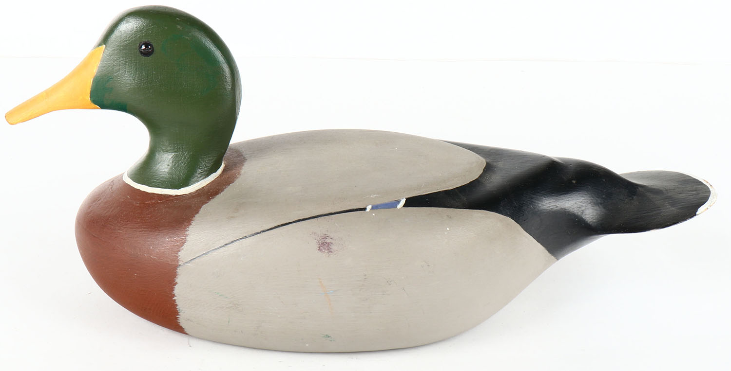 Mallard Drake by George Sanis, c1970, GE, Hollow wood, original paint, 17'', OAL. Grade: Excellent + - Value: 20 to 80