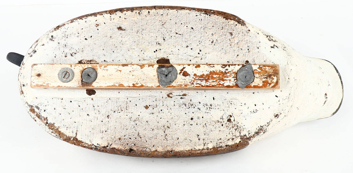 Canada Goose by LL Bean, unmarked on keel, glass eyes, solid cork body, wood head, original paint, structurally excellent, 25'' OAL. Grade: Excellent ++ - Value: 10 to 50
