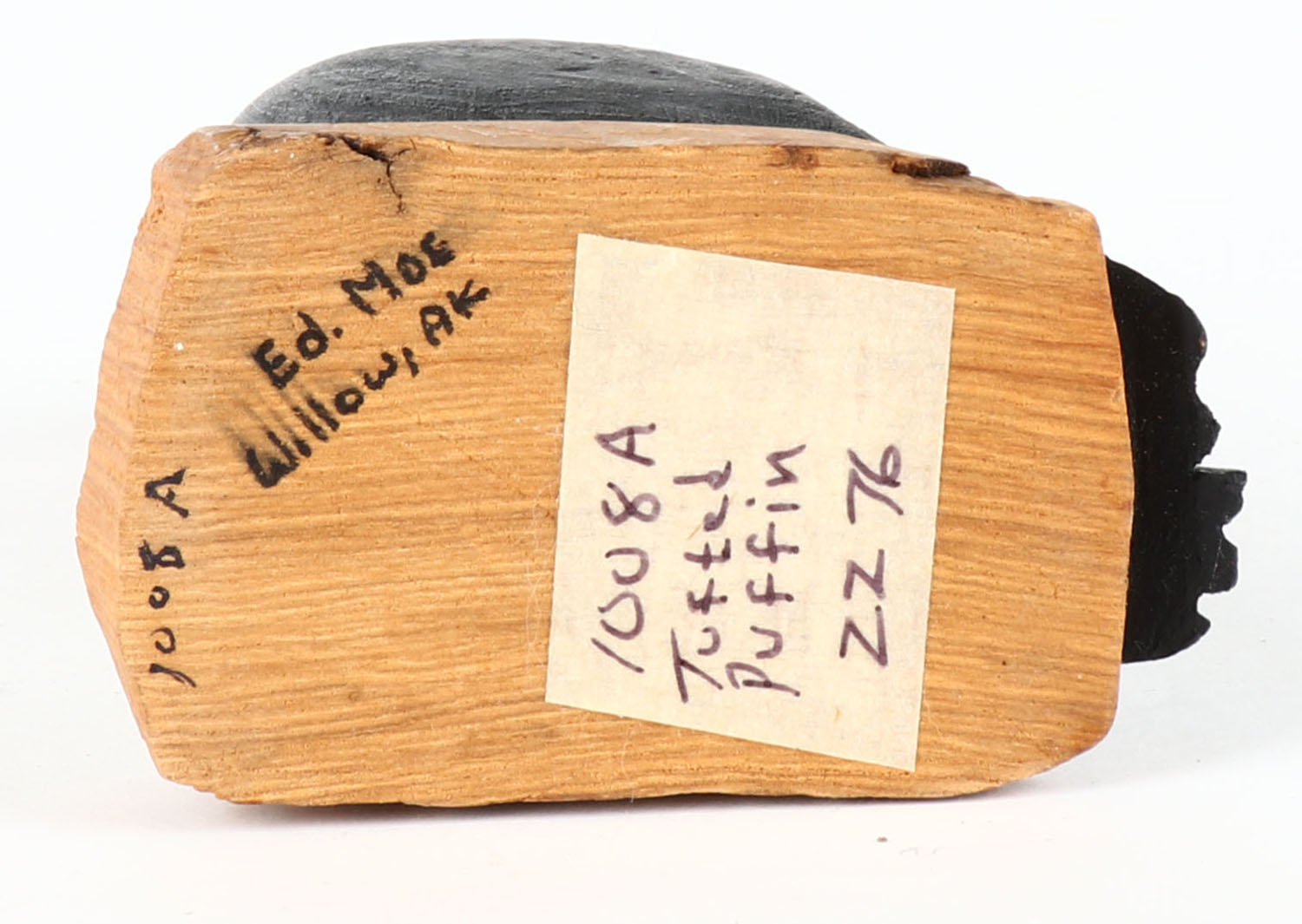Puffin by Ed Moe Willow, AK, GE, solid wood, mint original paint on stand, 5'' tall. Grade: MINT - Value: 10 to 50