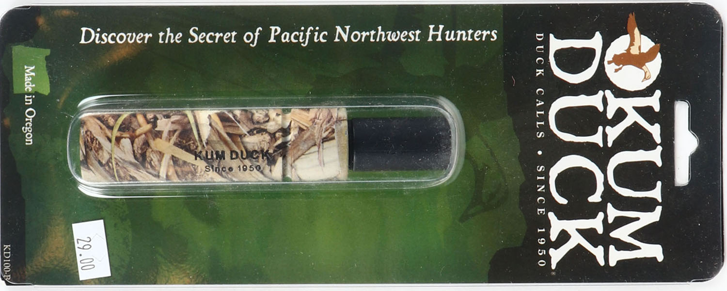 Kumduck duck call, CAMO, this one does it all, new in case, sounds great, made is Oregon. Grade: MINT - Value: 20 to 60