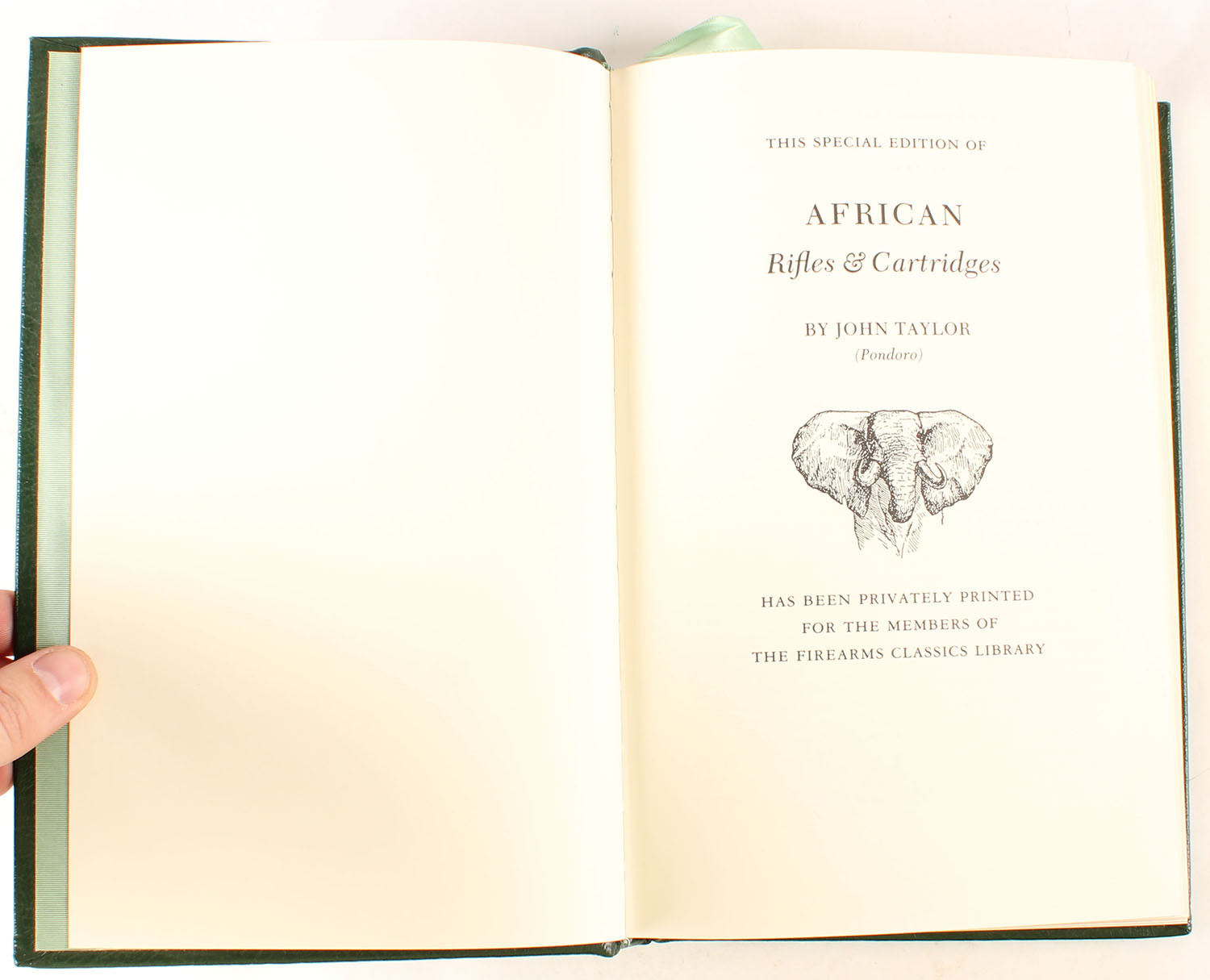 African Rifles and Cartridges by John Taylor 1995, 6'' x 9''. 431 pages, pages clean, binding tight, hardcover mint, full leather, silk ribbon marker. Value: $100 Grade: MINT - Value: 20 to 100