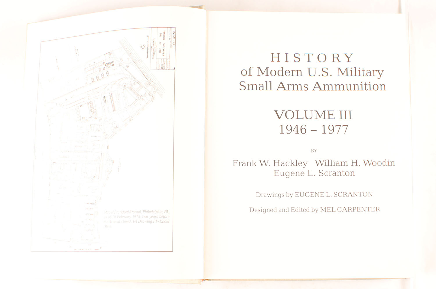 History of Modern U.S. Military Small Arms Ammunition Volume III 1946-1977 by F.W. Hackley , 8 1/2'' x 11''. Pages clean, binding tight, hardcover very good. Value: $500 Grade: Very Good ++ - Value: 50 to 500