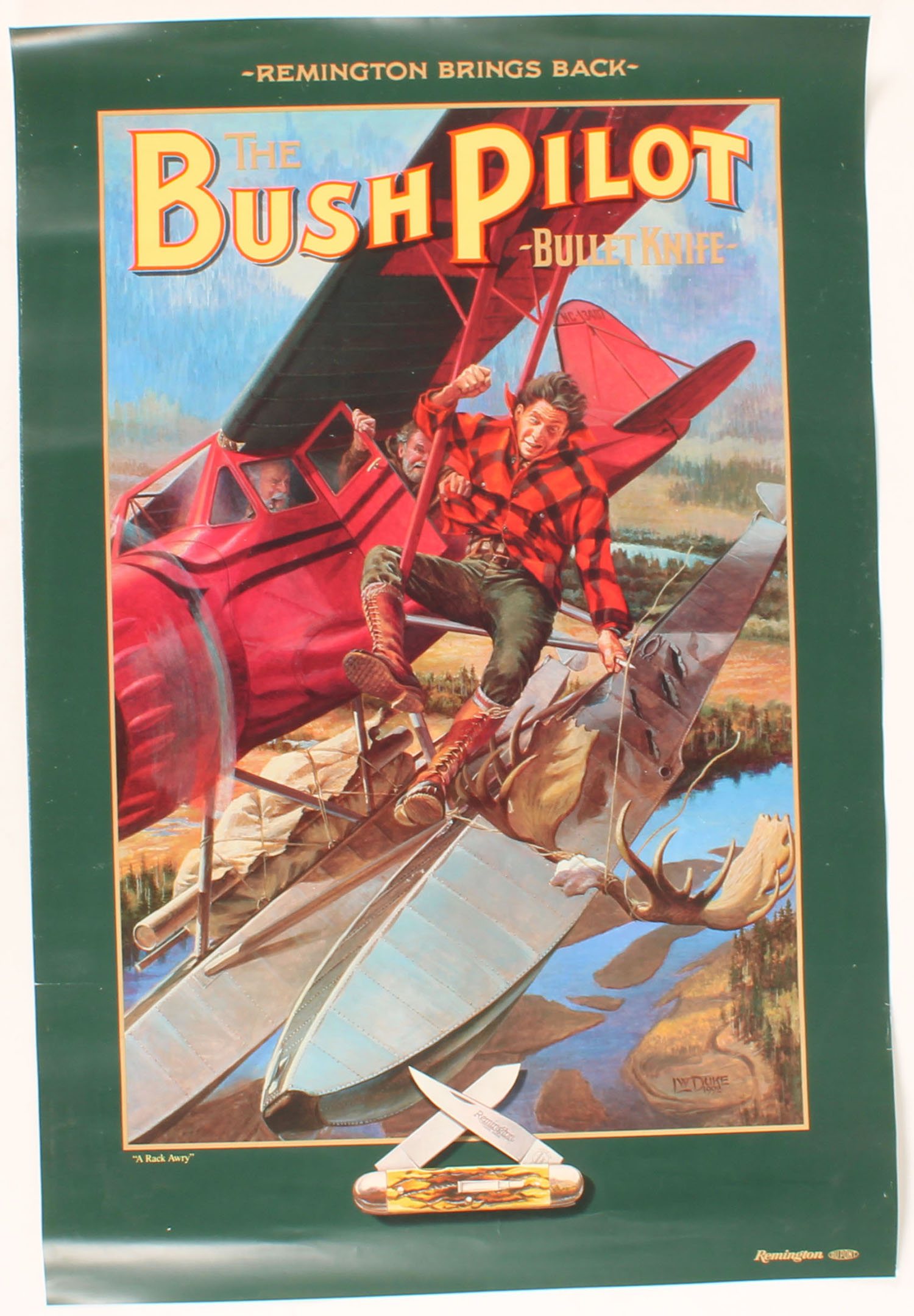 Remington The Brush Pilot Bullet Knife Poster. Grade: Excellent ++ - Value: 10 to 100