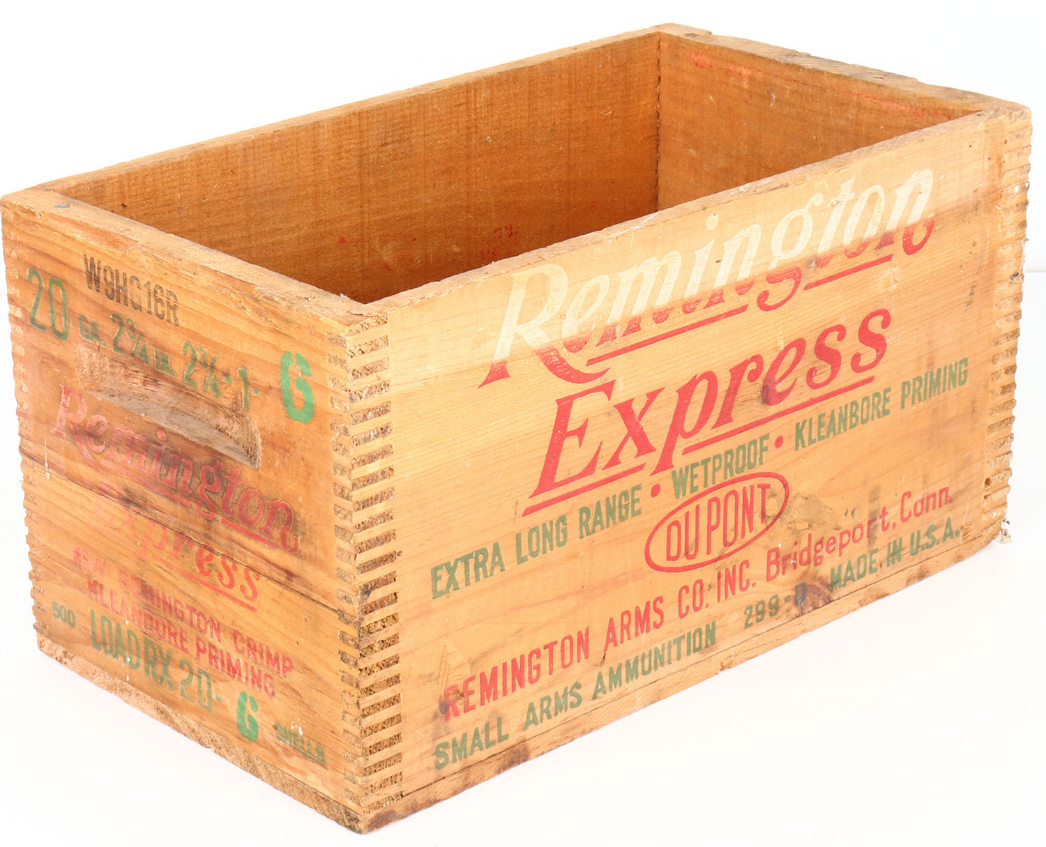 Remington, 20 Ga., Express, red, & green print has some fading and crate has good color. Grade: Very Good ++ - Value: 10 to 40