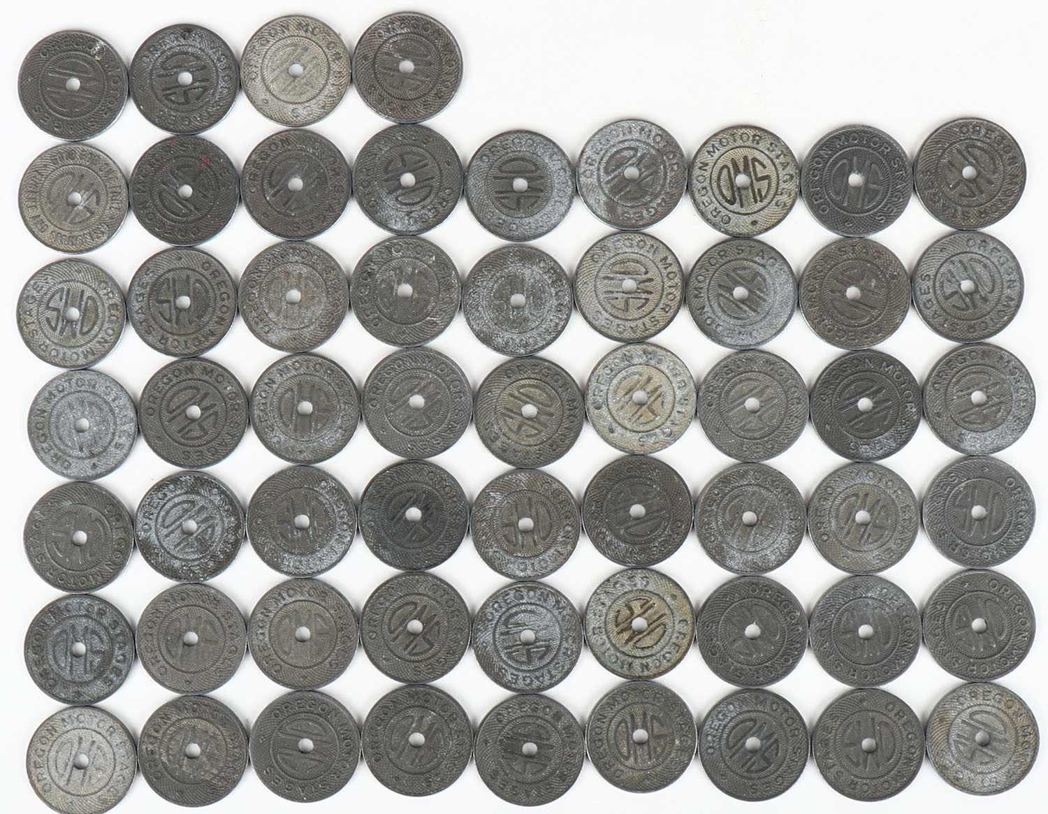 Large lot of Oregon Motor Stages, One admit coin. Grade: Excellent - Value: 2 to 20
