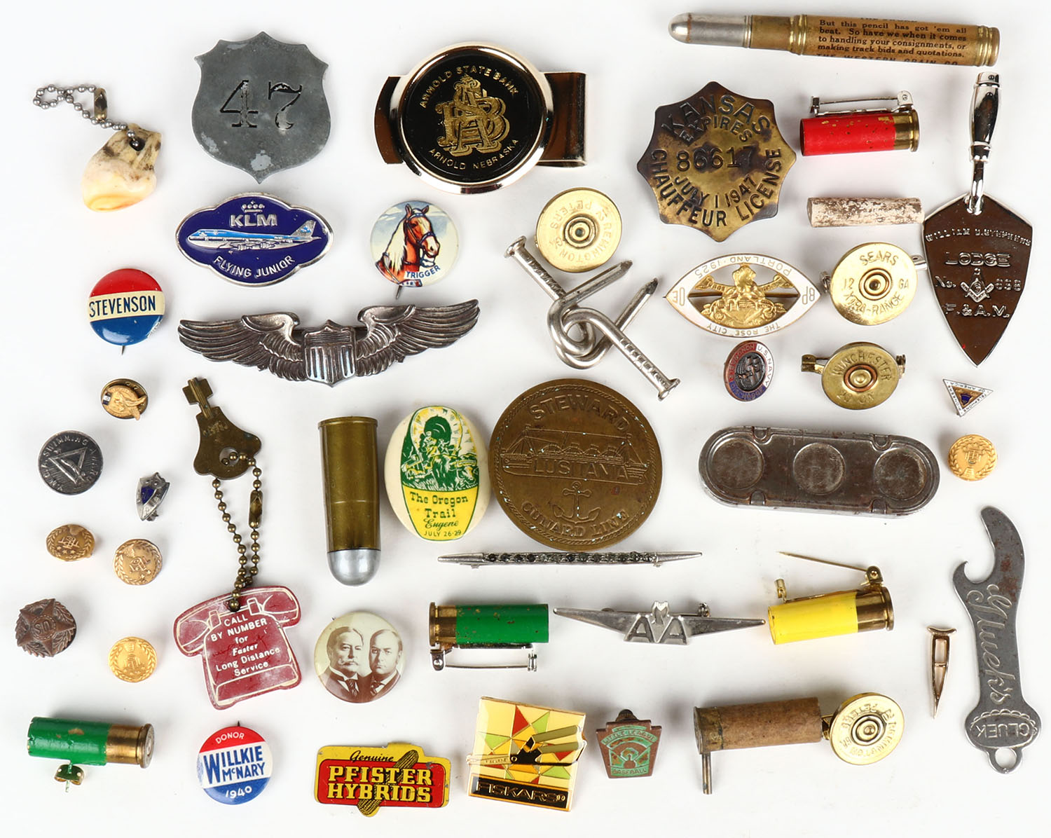 Lot of various pinbacks. Grade: Excellent - Value: 10 to 50