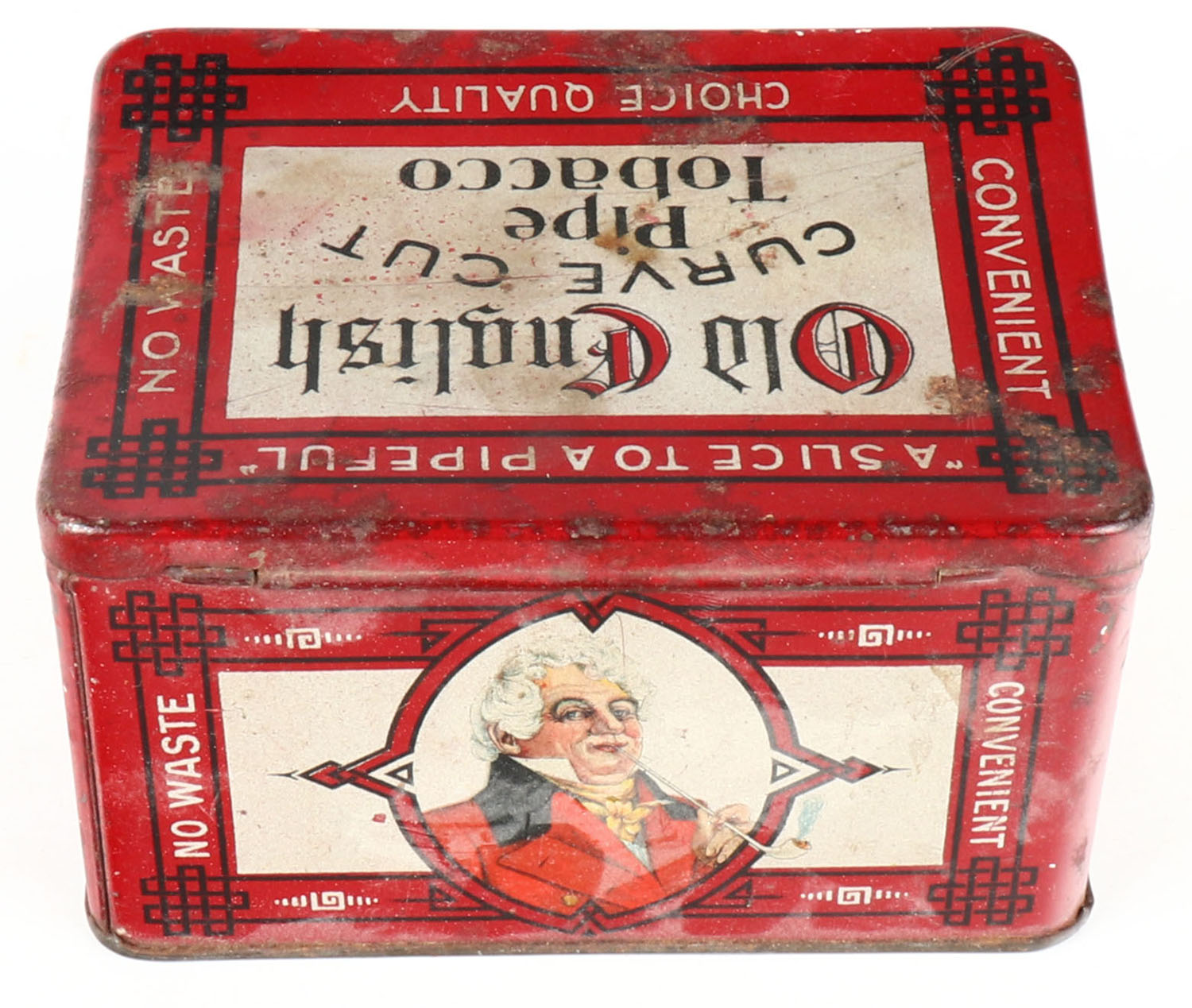 Metal tobacco tin Empty, Old English curve cut pipe tobacco. Grade: Very Good ++ - Value: 10 to 50