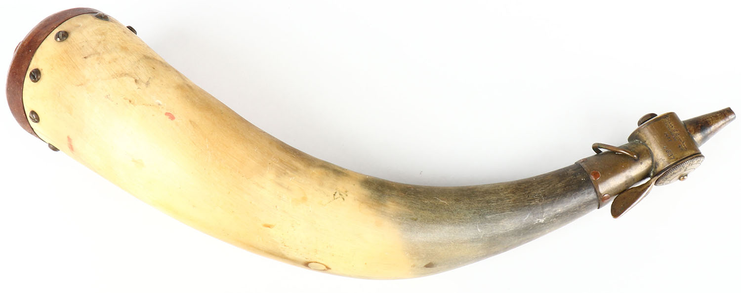 Mark B Burnham powder horn, dated 1957 #537. Grade: Excellent - Value: 50 to 200